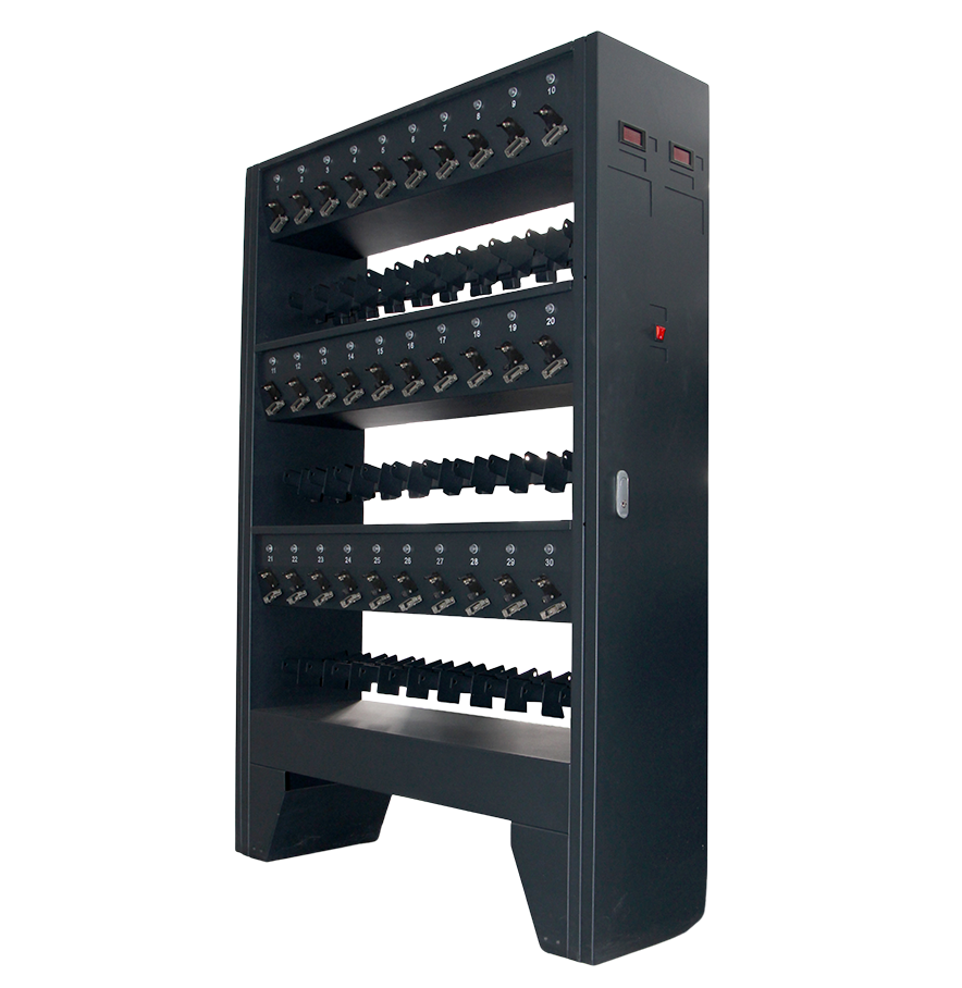 Somos distribuidor oficial de las lámparas mineras y cargadores Wisdom en el Perú. Contamos con estantes de cargadores con doble cara de carga rápida para lámparas con cable.